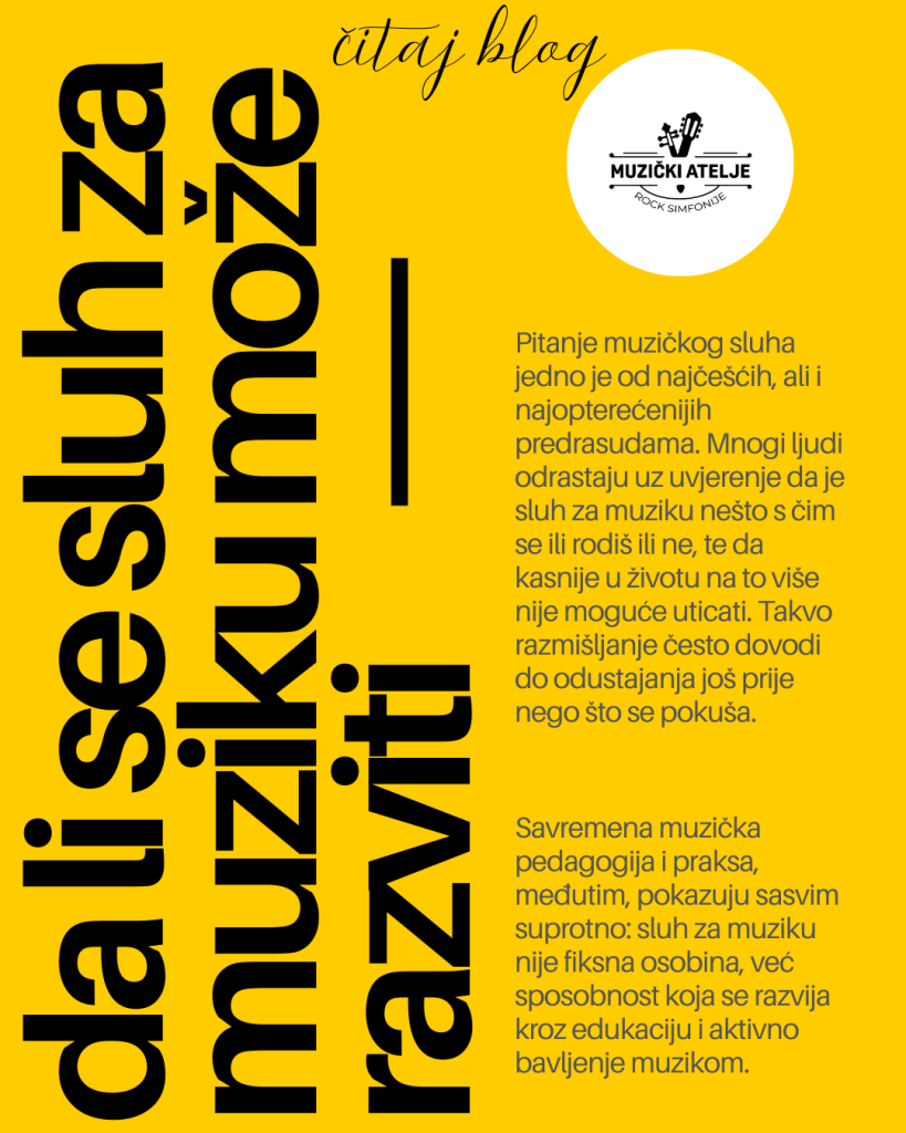 Pitanje muzičkog sluha jedno je od najčešćih, ali i najopterećenijih predrasudama. Mnogi ljudi odrastaju uz uvjerenje da je sluh za